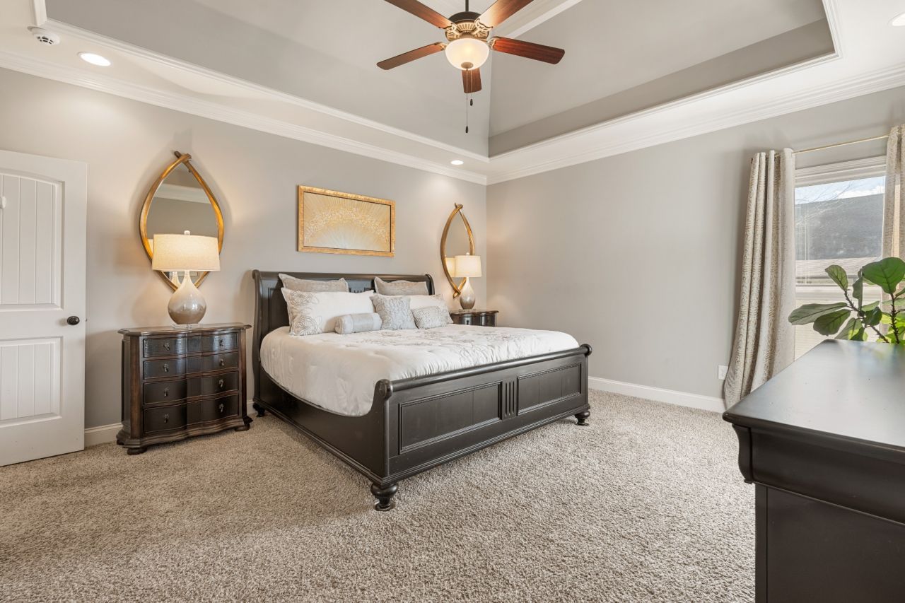 This one-owner expanded Chelsea plan built by Eastland Construction in 2018, is located on a cul-de-sac in Blackberry Trace, a quiet, 64-home community with convenience to popular locations in the Greater Nashville area and zoned for Wilson County schools. With nearly 3,600 sqft and 5 bedrooms (or 4 bedrooms + an Office), including 4 bedrooms on the main level and a private guest suite upstairs, this home provides maximum flexibility to accommodate working from home and growing or multi-generational families. Features include custom iron entry double doors; an open concept; 3/4 oak hardwoods; tile in all wet areas; tulip poplar millwork, including wainscoting, recessed panels, decorative columns, and coffered ceiling in the dining room; granite counters in the kitchen and primary suite; new backsplash in kitchen; custom maple cabinetry; custom closet built-ins; custom shelving in garage; whole-home smart wiring, security, and antenna; upgraded light fixtures; a floor-to-ceiling stacked stone gas fireplace; a 680 sqft bonus room; and additional storage, including a large walk-in attic. Outside, you will find a screened porch from which to enjoy sunsets, a stone wood-burning fireplace with seating wall, privacy fence, 5-person hot tub, extensive landscaping with uplighting, sodded fescue, and smart irrigation. Also includes an encapsulated and conditioned crawlspace. The neighborhood is just 20 min or less to Lebanon, Mt. Juliet, and Gallatin, 30 min to BNA, and less than 15 min to grocery stores, restaurants, shopping, and boat ramps for convenient access to Old Hickory Lake. Exterior images/video captured in Fall 2025 in preparation for February listing; interior images/video from 2026. Be sure to check out the included video!